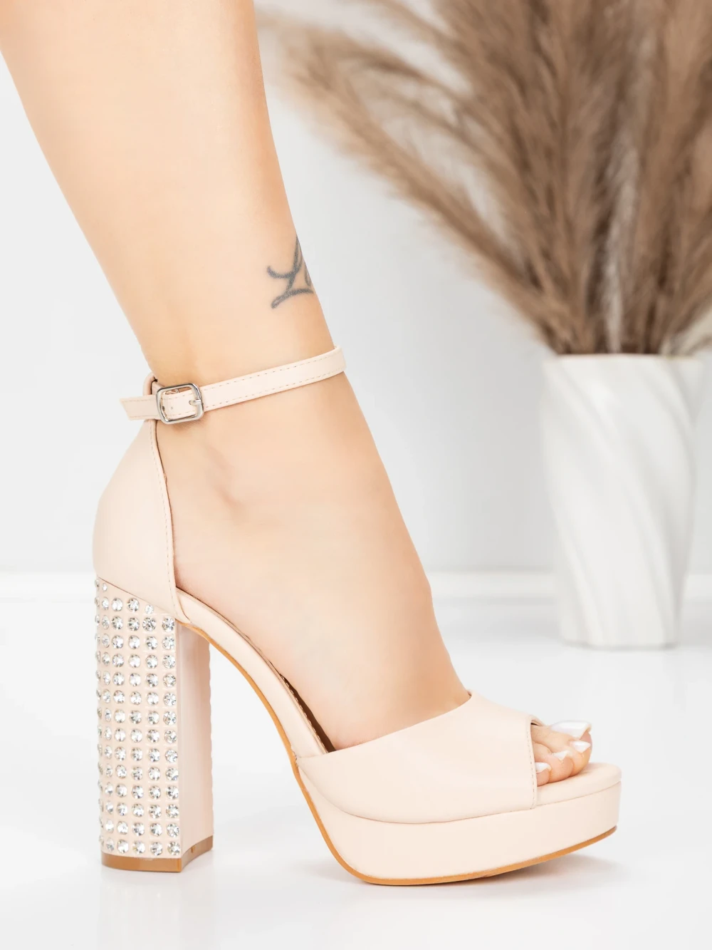 Ženski sandali z debelo peto in platformo 5KV71 Bež | Mei