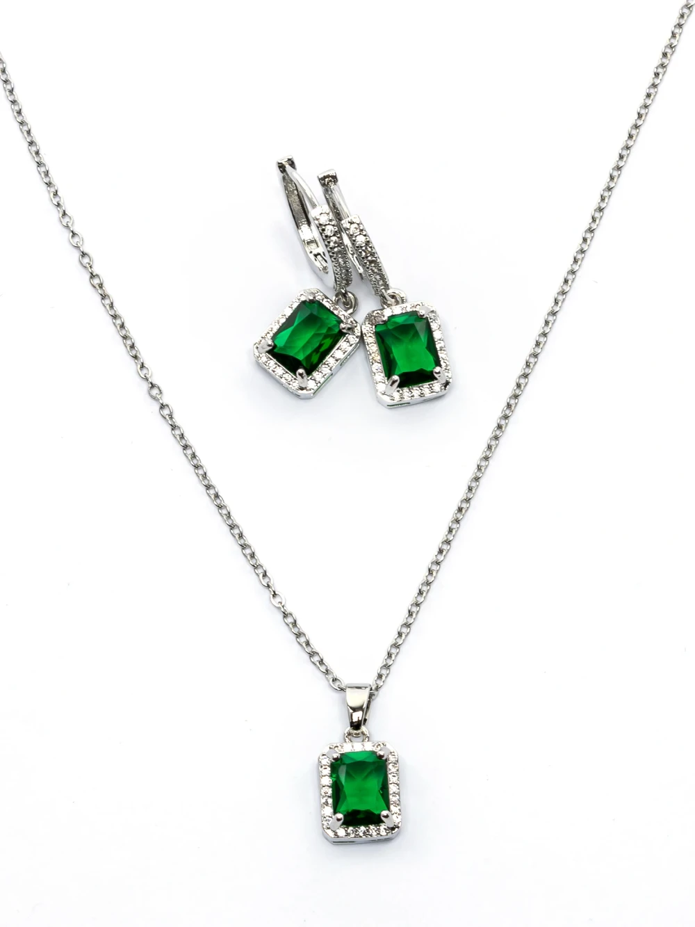 Komplet ogrlice in uhanov CLR001 Srebrna-Zelena | Mei