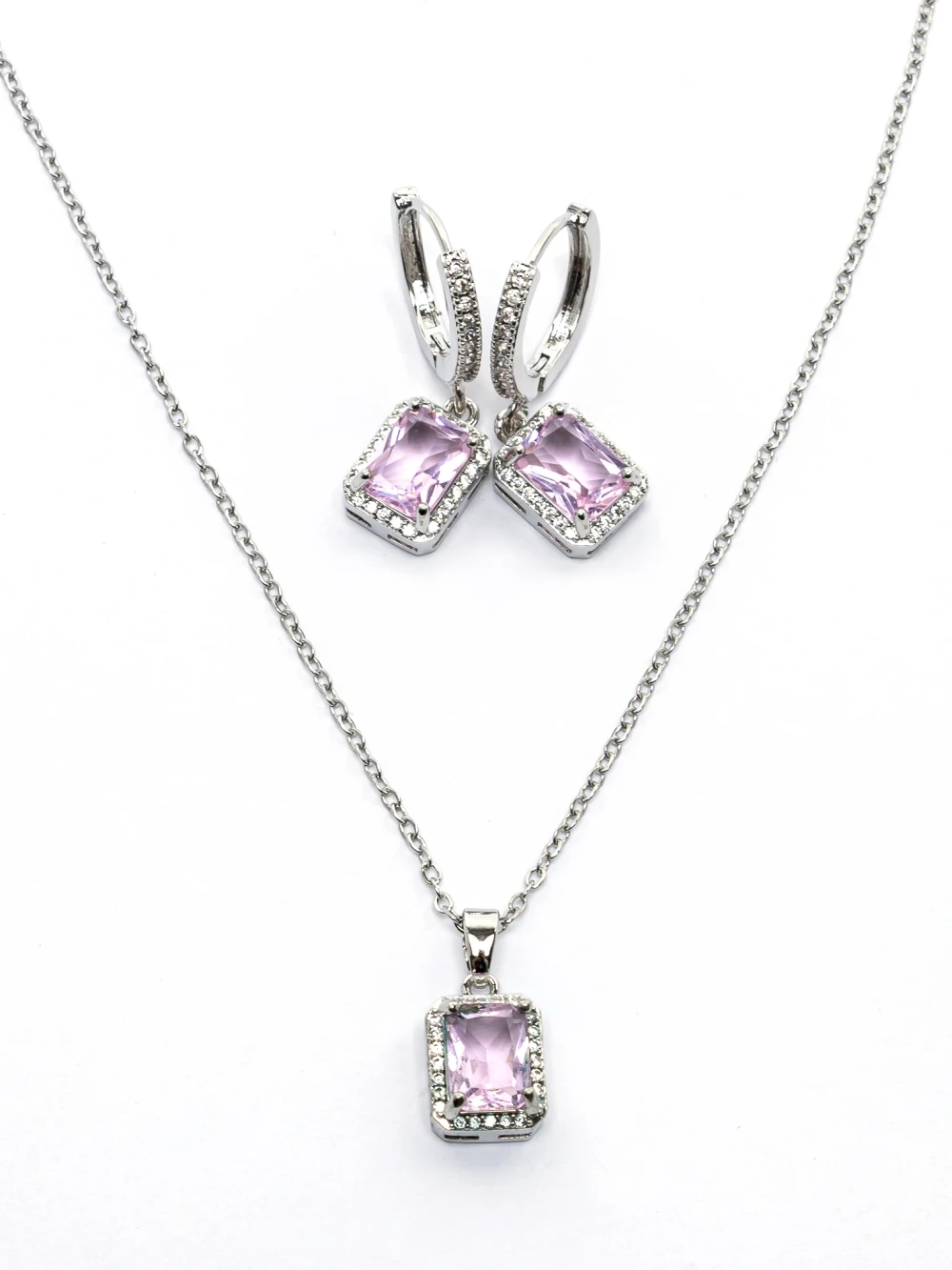 Komplet ogrlice in uhanov CLR001 Srebrna-Roza | Mei