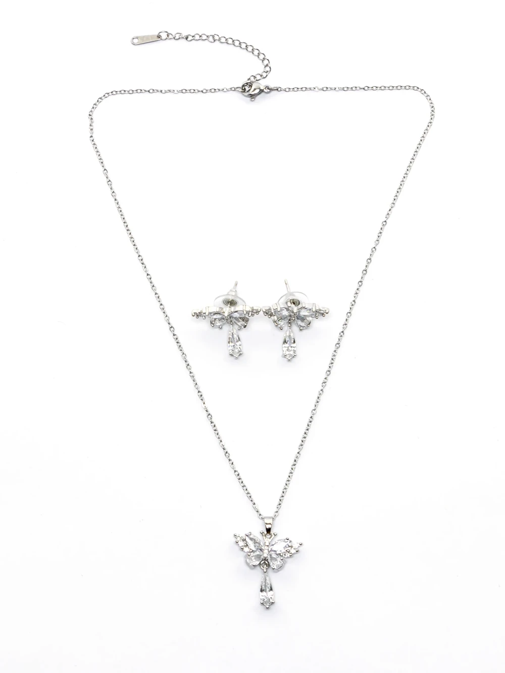 Komplet ogrlice in uhanov CLR002 Srebrna | Mei