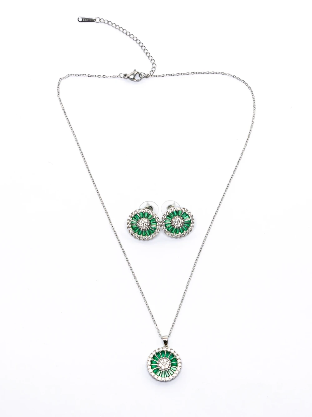 Komplet ogrlice in uhanov CLR004 Zelena | Mei