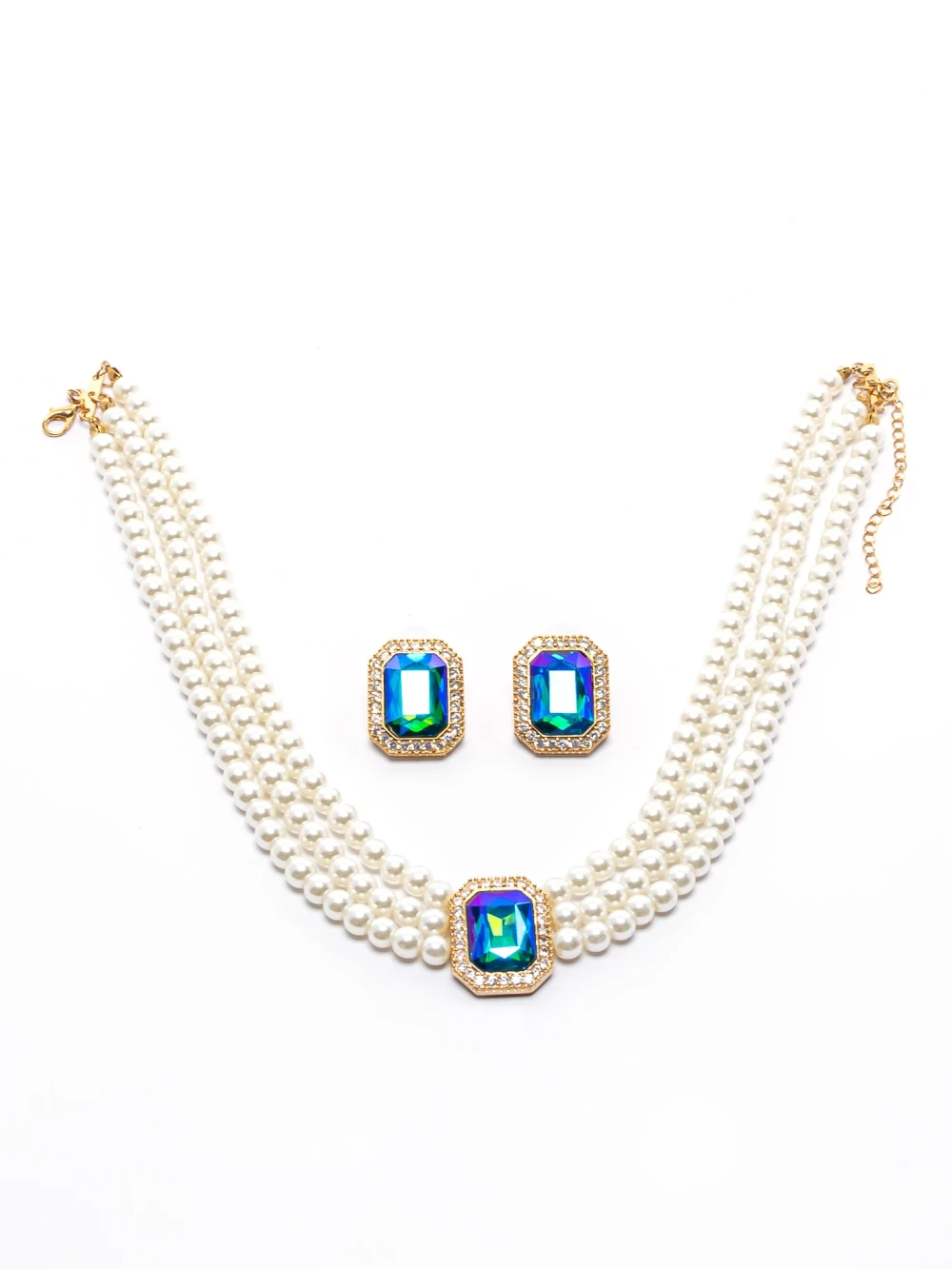 Komplet ogrlice in uhanov CLR011 Modra | Mei