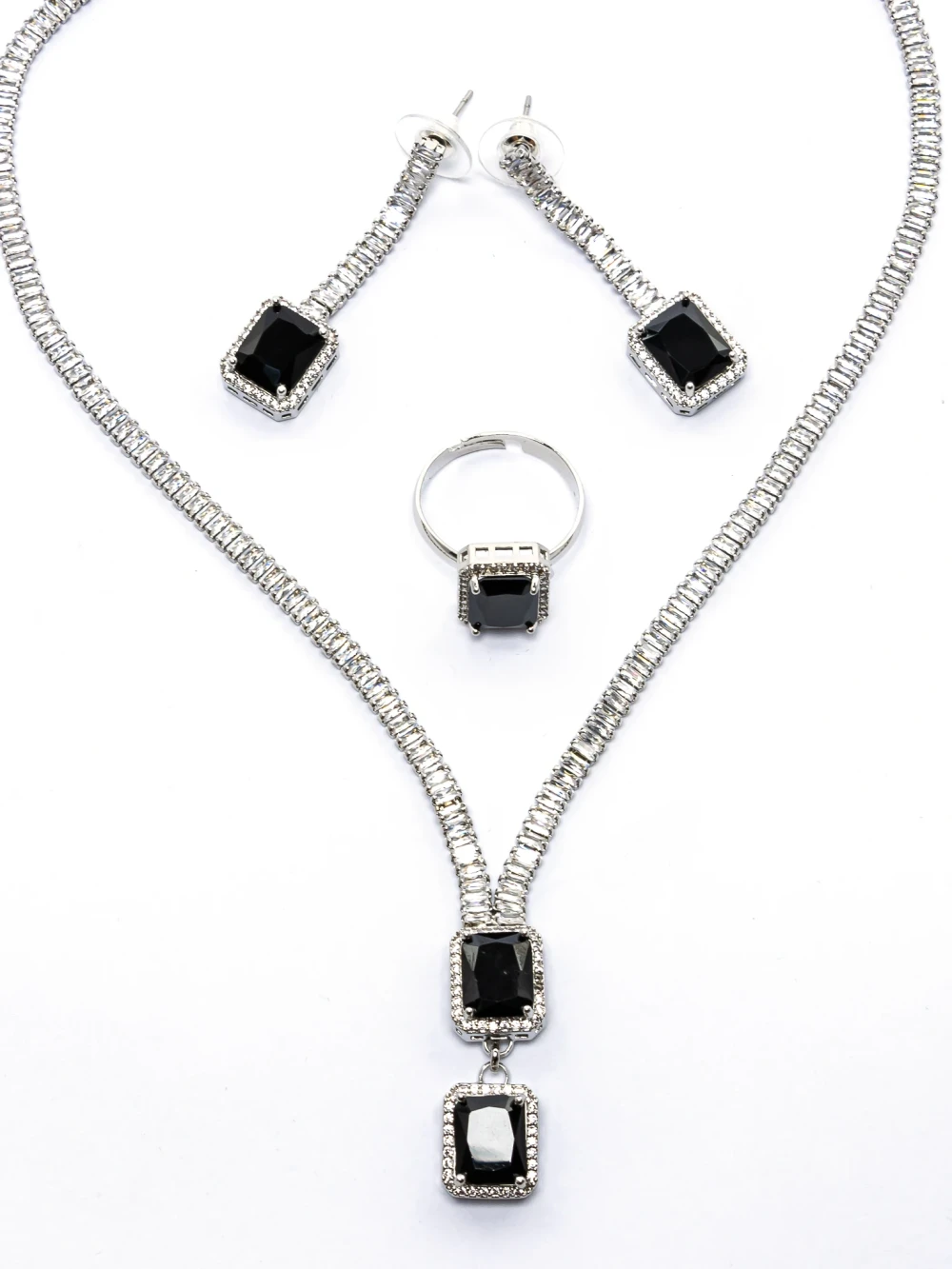 Komplet ogrlice in uhanov CLR016 Srebrna-Črna | Mei